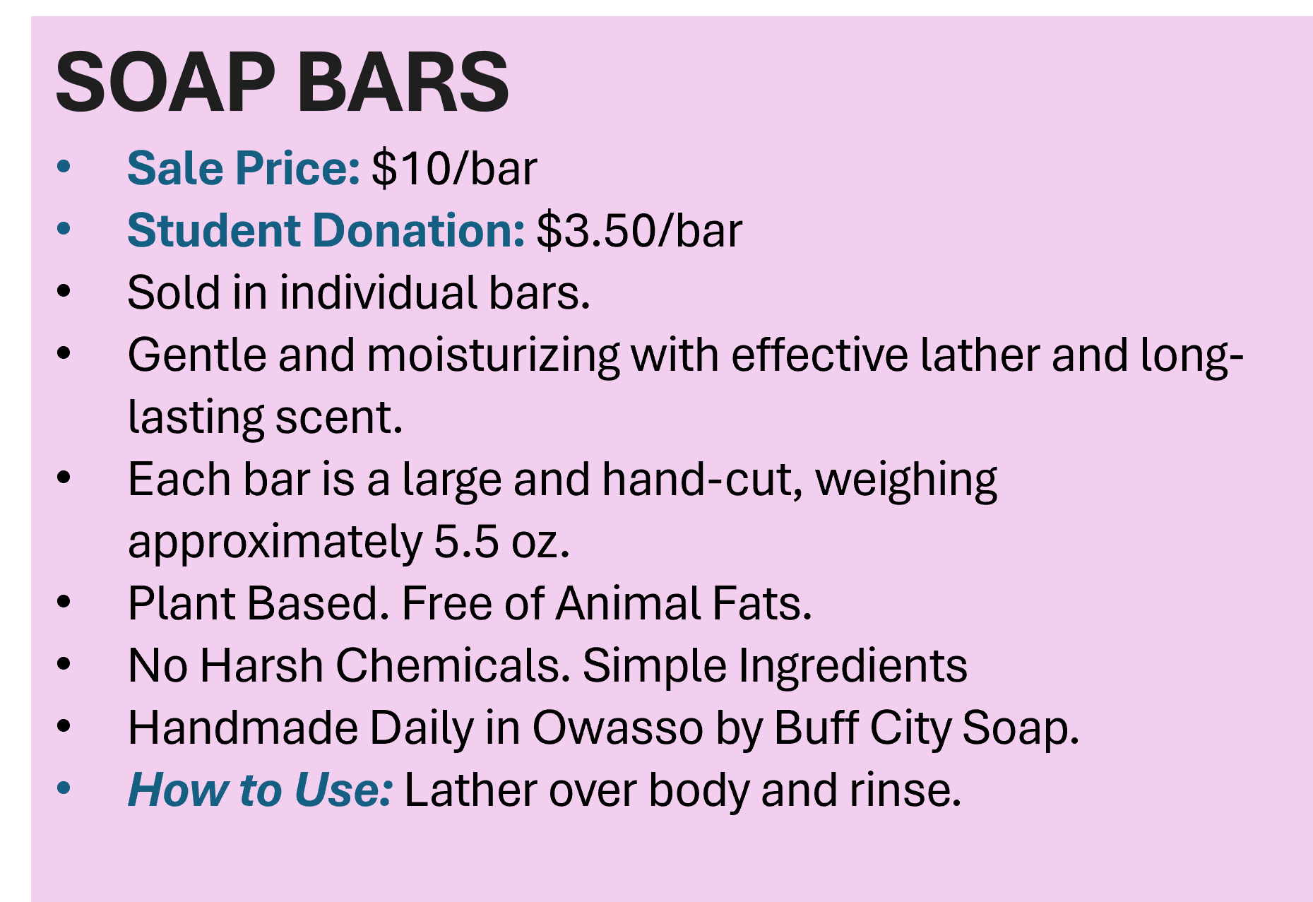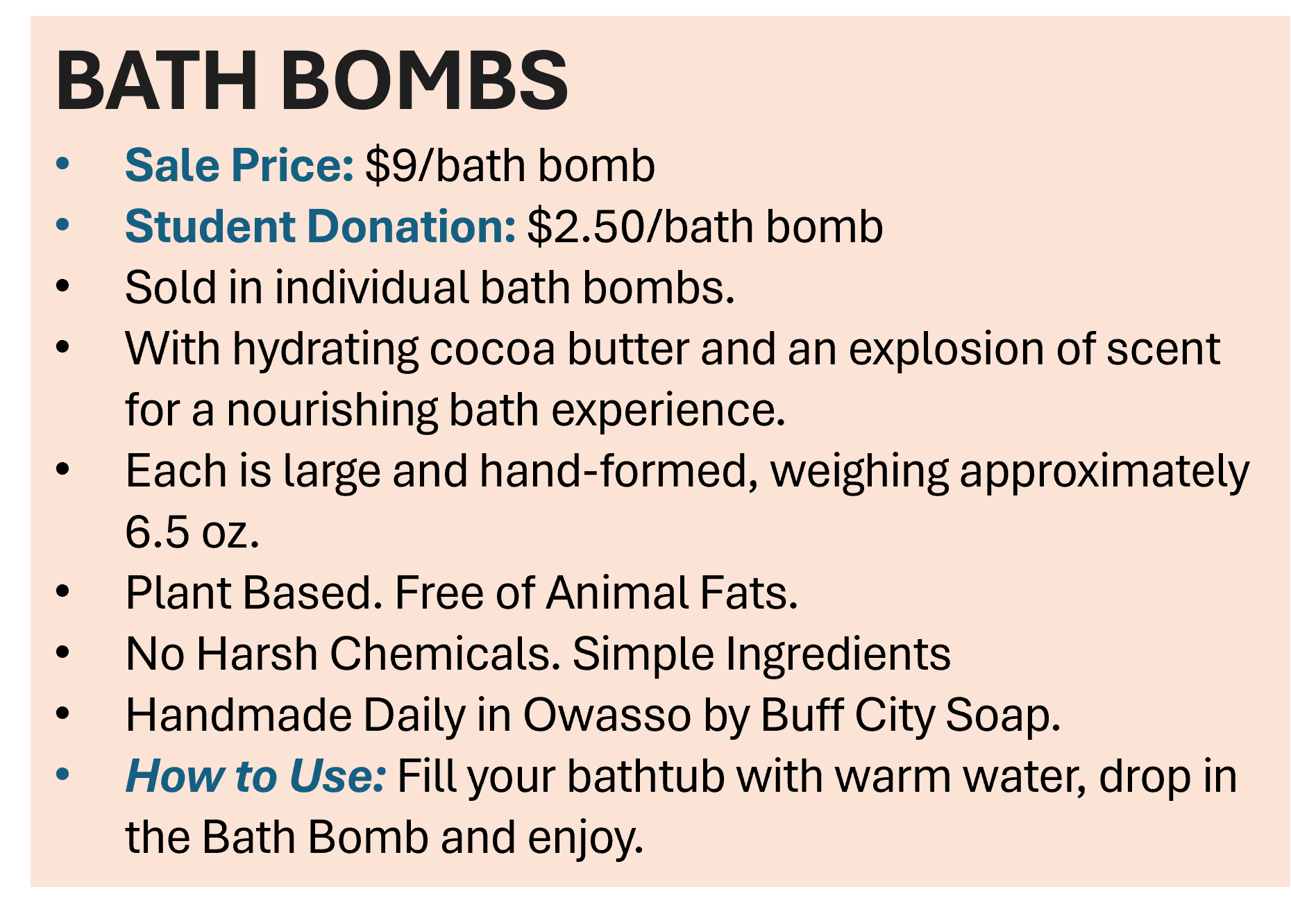 Support Owasso Bands and its students with our 2026 Soap and Bath Bomb Sale, featuring handmade soaps and bath bombs, all made right here in Owasso by Buff City Soap. Choose from multiple amazing scents, including our signature “Rhythm & Lather”. These beautifully crafted products make the perfect gift for Mother’s Day or Graduation. Every purchase helps Owasso Band students' trips, fees, and music education. Shop now through April 29, with delivery on or around May 8.