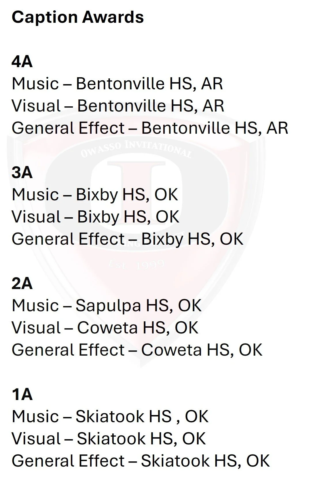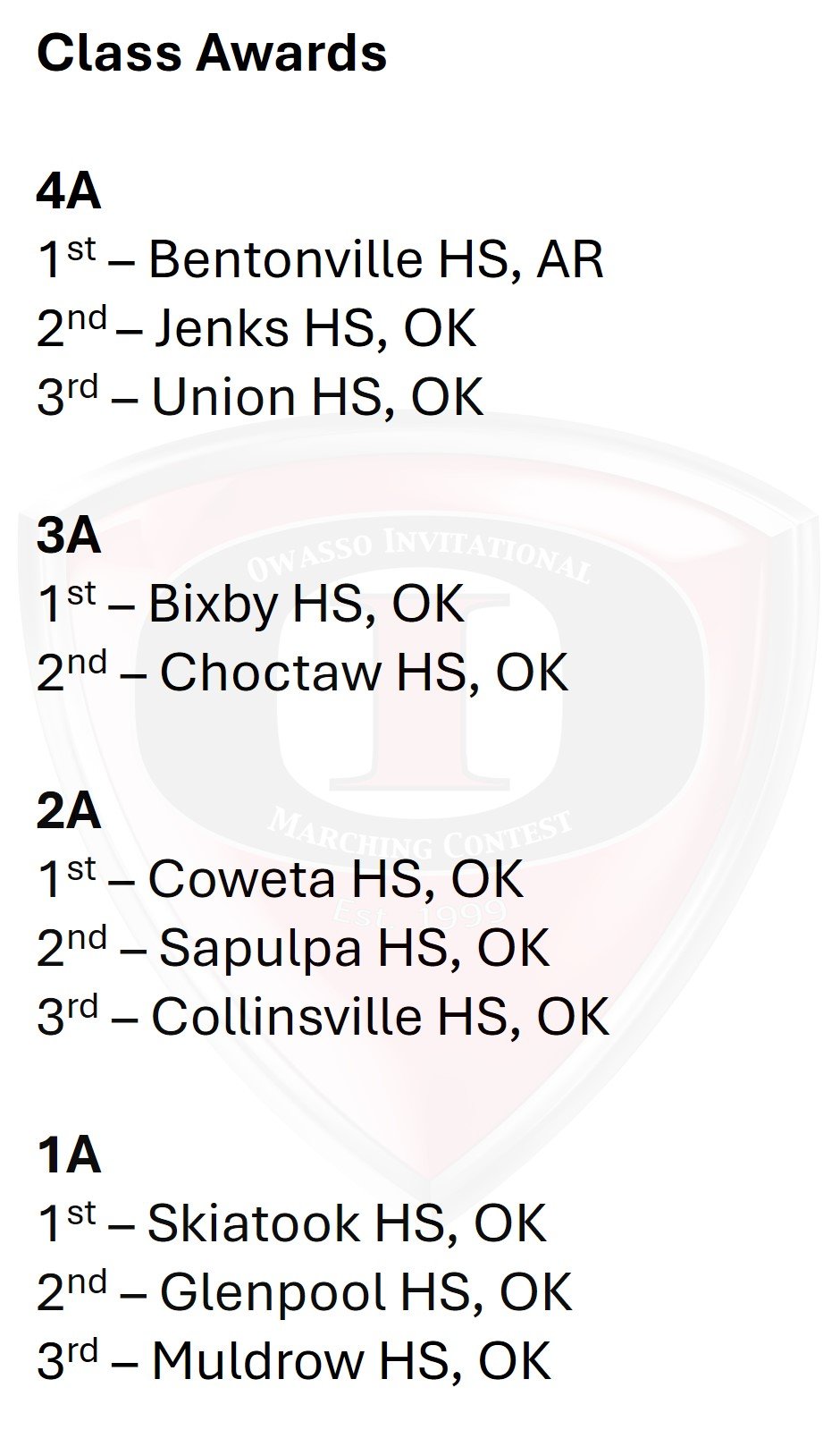 Owasso Bands are pleased to announce the following participants in the 2025 OIMC.